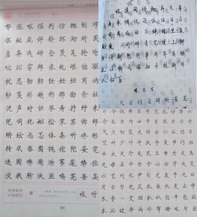 第四学期期间,HLX-236小组坚持每天完成字帖的临摹和纲楷的书写。