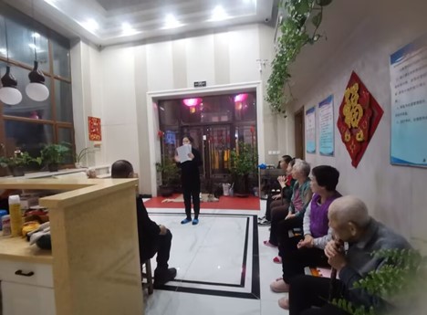 李俏同学在家乡社区为老年人讲解高血压糖尿病的预防,解决他们的疑问,让他们了解老年病应注意怎样的饮食和生活习惯。