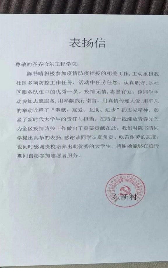 陈书晴同学说自己在家乡参加的志愿服务主要是为年老的老人测量血压,在测量血压的事情上以及在测量血压后询问老人都有哪些基本疾病,在询问后可以知道现在的老人都会伴随三高的问题,在询问后通过自己在学校所学的知识可以帮助老人,这让自己会觉得很有自豪感,因为自己所学的可以帮助到人。