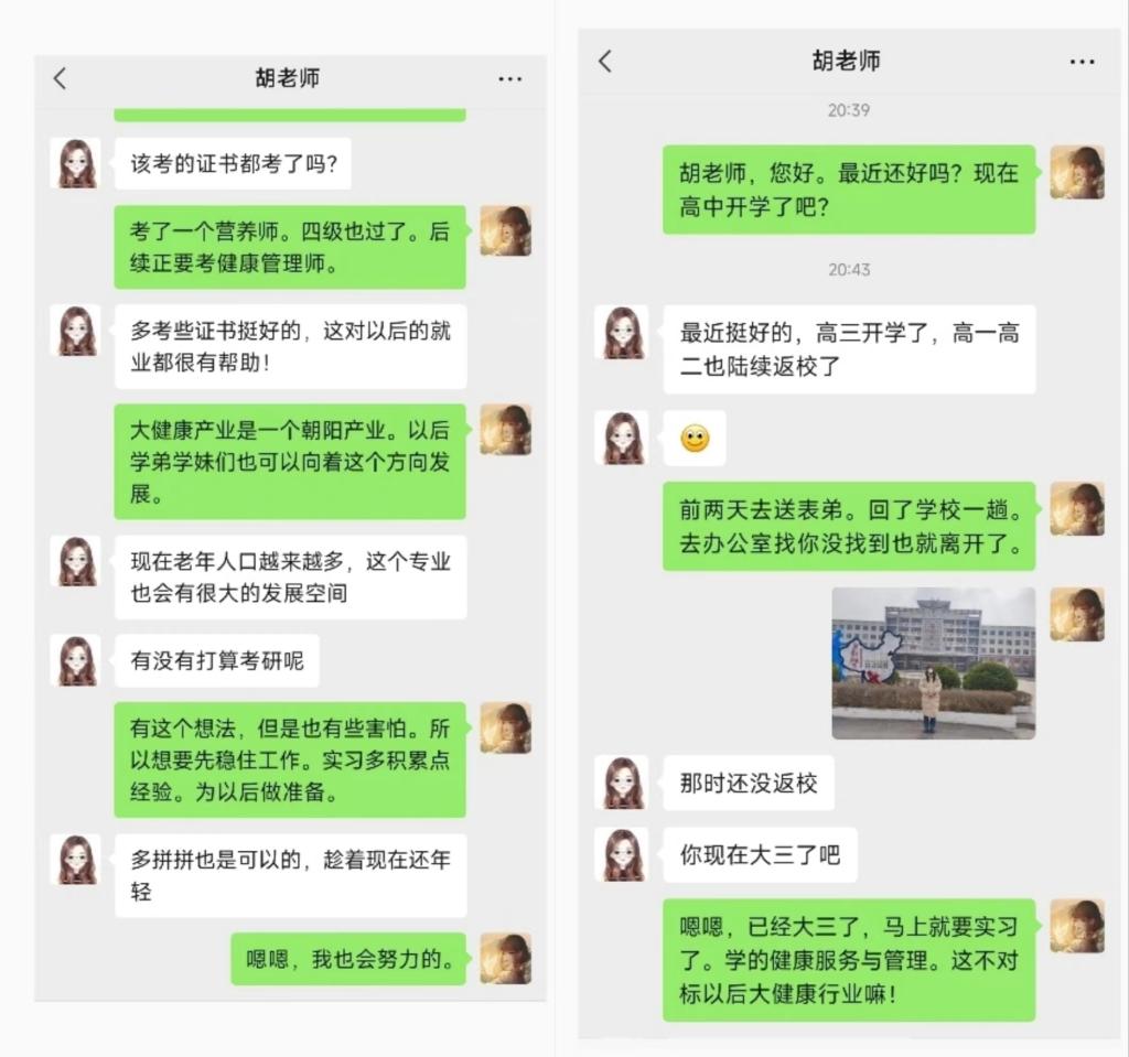 为了感谢母校的栽培,也为了响应“母校回访”这一活动,我于2023年2月10日采用网上交流的方式,与我高三班主任胡老师进行了交流。本次活动主要表达对母校的感谢,并且对老师致以崇高的敬意,向分享我的大学特色地方已经我的成长。