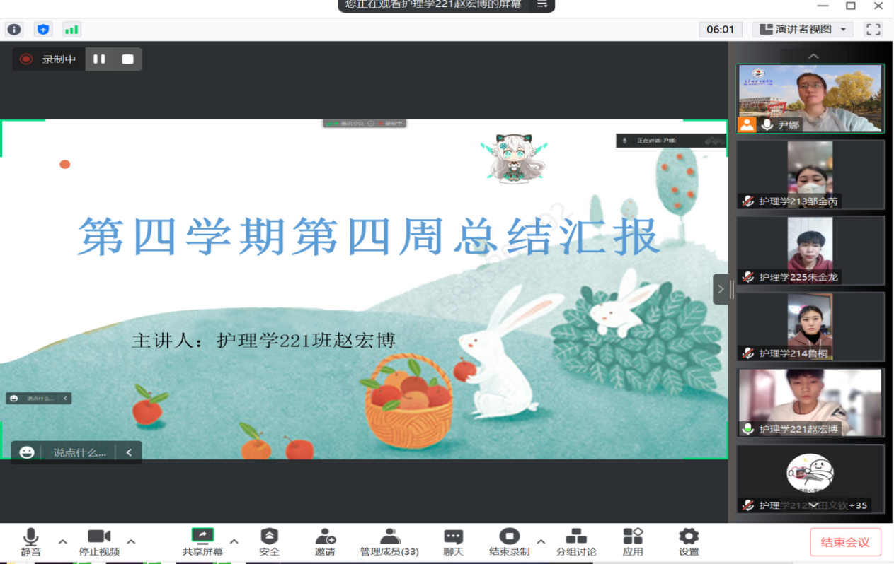 时序更替,华章日新。我们要保持着优势,并且时刻明白自己的不足,在新的一年里更要迎来优秀的自己。本周我们的社会实践志愿服务完成的比较好,发了5篇报道,但是母校回访任务推进的较慢,指导教师与未完成的同学逐一进行交流,了解这些同学是否存在哪些困难或疑惑,确定了完成的时间以及发布报道的时间。本周的报道数量有所增加,但还存在着一些问题:如报道的书写格式、内容问题,老师都进行了详细的指导。会议中尹老师强调所有同学需按时上传各项任务,小组成员之间要互相学习,取长补短。尹老师着重提醒同学们在假期过程中注意安全,对于疫情不能放松警惕,应继续佩戴口罩。在会议最后针对同学们的有疑问的地方进行解答。