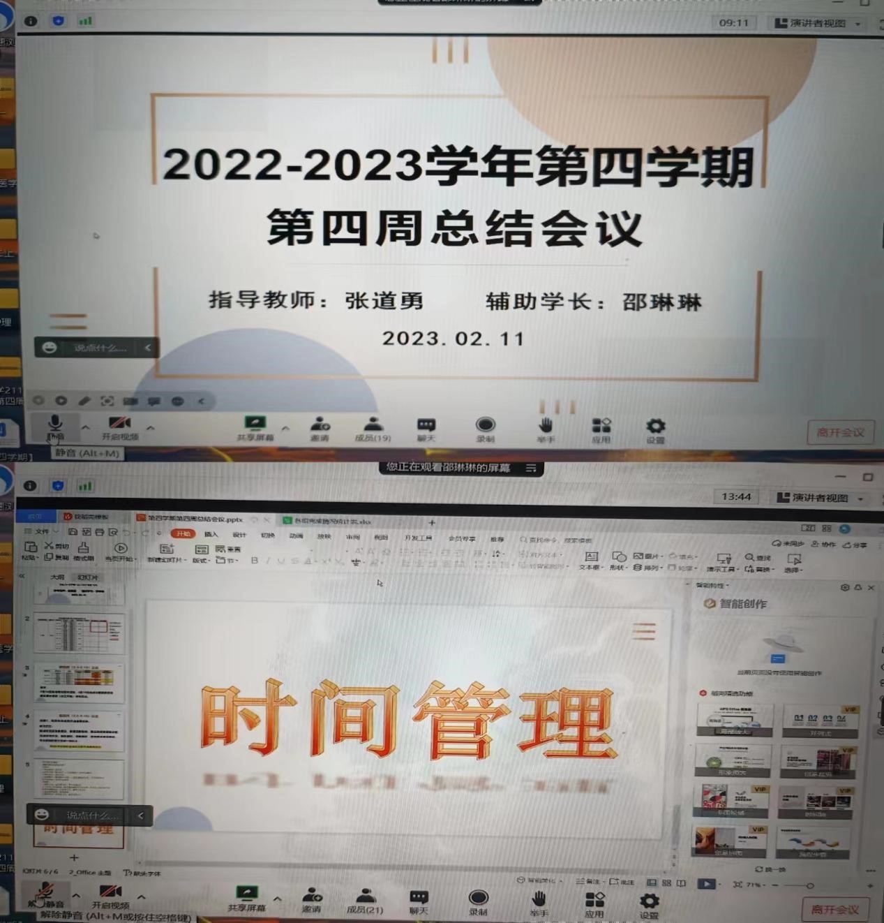 2023年2月11日下午,生涯指导教师张道勇组织召开第四学期第四周总结会议。