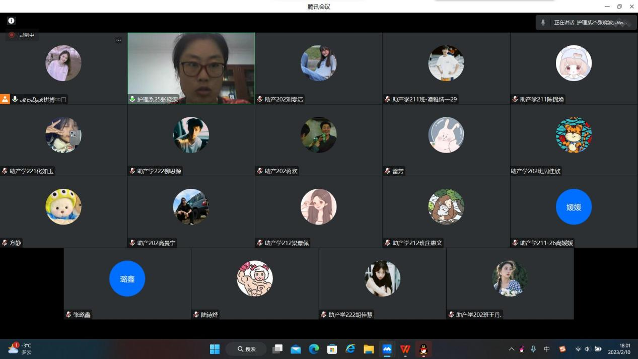 第四学期社会实践活动在有序进行,为使同学们假期不松懈、放空自己,开展了读书交流活动。我系生涯导师张晓波于2023年2月10日,通过腾讯会议组织助产学专业的生涯学生开展第二次读书分享会。