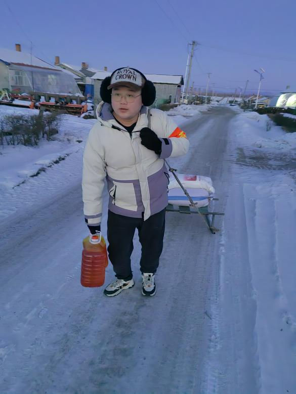 春节来临之际,前进村开展敬老爱老文明实践志愿服务活动。志愿者们为60岁以上老人分发米、面、油等生活物资。志愿者们一边帮助老人搬运面粉和油,一边叮嘱老人天气寒冷要好好保重身体、注意保暖,把一份份实惠的福利发放到老人手中,暖在心里,让他们感受到浓浓的年味。