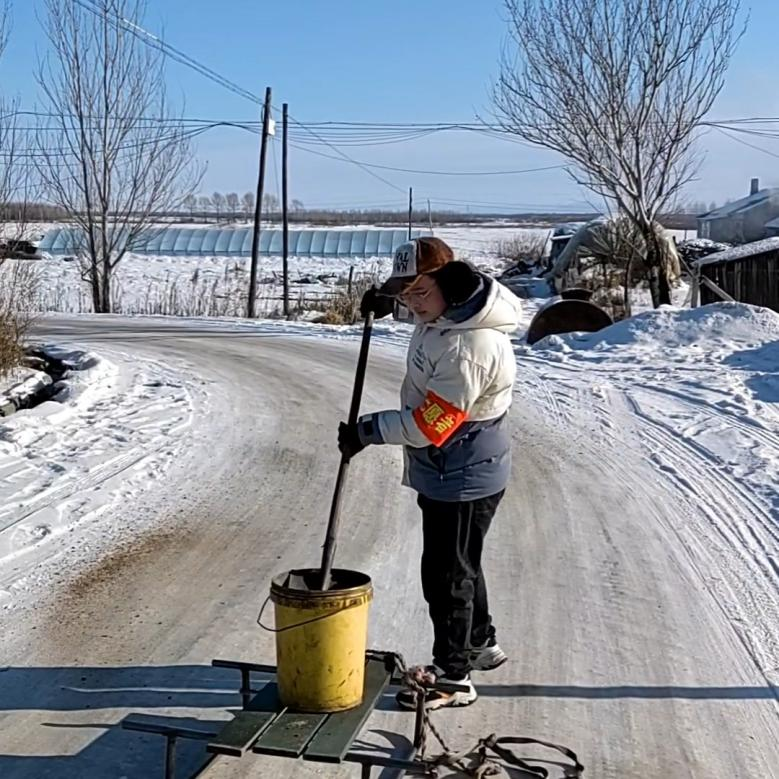 由于降雪,且年关将近,私家车来往频繁导致道路湿滑,为了营造安全畅通的出行环境,“前进村开展“扬沙防滑”活动。志愿者们经过数个小时的相互配合、通力协作,对前进村的9条主要路段进行了防滑处理,确保了出行安全。