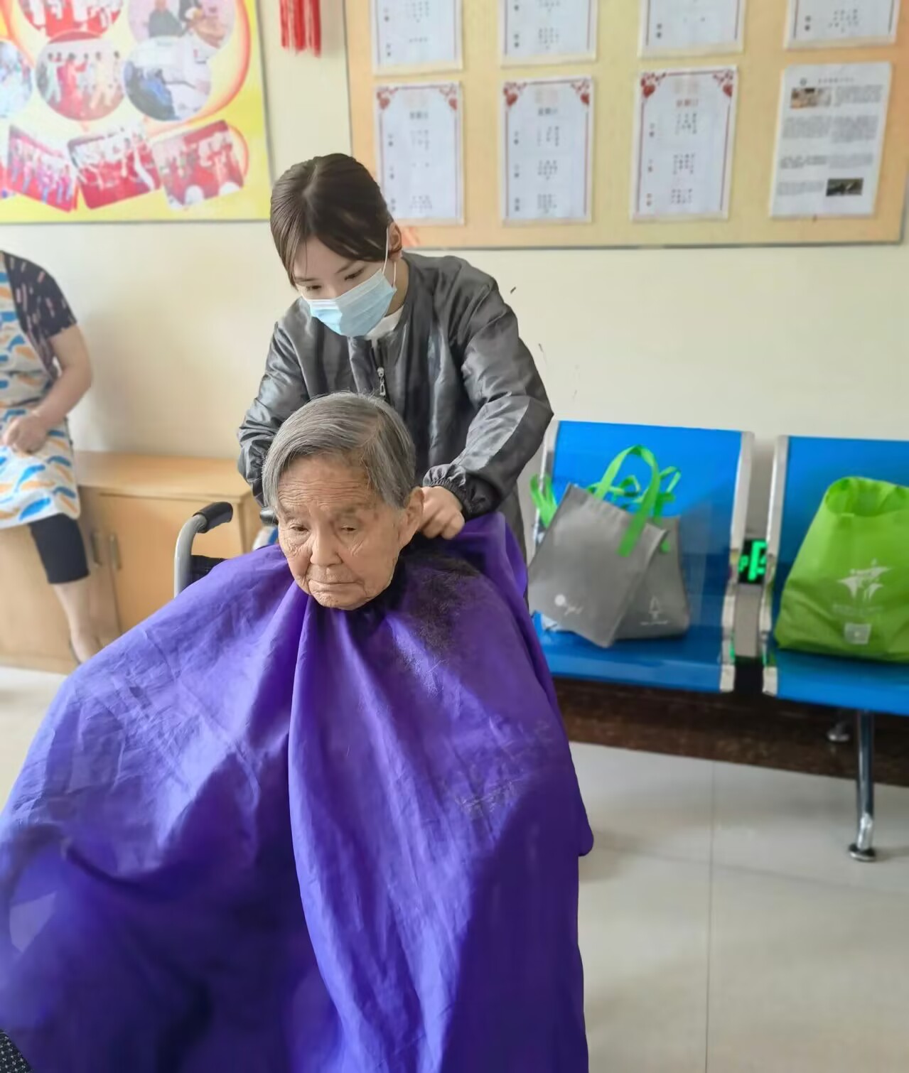 在志愿过程中,HLX-055小组的同学们为老人们理发、测血压并等。并与老人们恳切交谈,把自己当做“家里人”,认真倾听老人们的“心里话”,叮嘱他们注意用电安全,谨防滑倒摔伤,给予他们心理上的关怀,使他们真正体会到社会的关爱,晚辈的敬仰。通过几个小时的志愿服务, 老人们乐得都合不拢嘴,脸上洋溢着幸福的笑容,感谢我校志愿者热情的服务。屋外寒风凛冽,屋内暖意融融,志愿服务活动在大家的欢声笑语中结束。