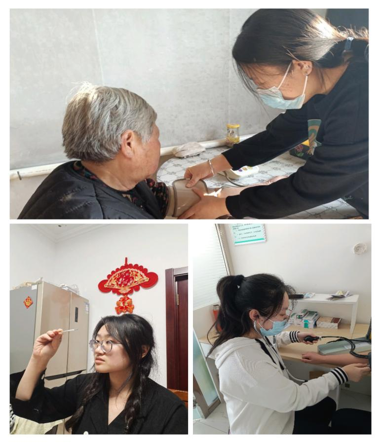 我们小组的三个人与工作人员分别来到当地养老院和卫生所给高龄、独居老人送上暖心健康包,向他们贴心问候,耐心地询问村民群众身体情况,倾听他们反映的健康问题。同时,针对特殊困难的老年人,反复询问他们的精神状况,叮嘱他们保重身体,身体一旦有异常情况一定要及时反馈,并主动帮助医护人员对72岁的独居老人陈奶奶测量体温、监测血压、血氧。为村里的重点人群、特殊群体送医、送药、免费体检,做好健康咨询、健康指导、健康监测等服务,向村民讲解新冠感染的相关知识和防病科普。