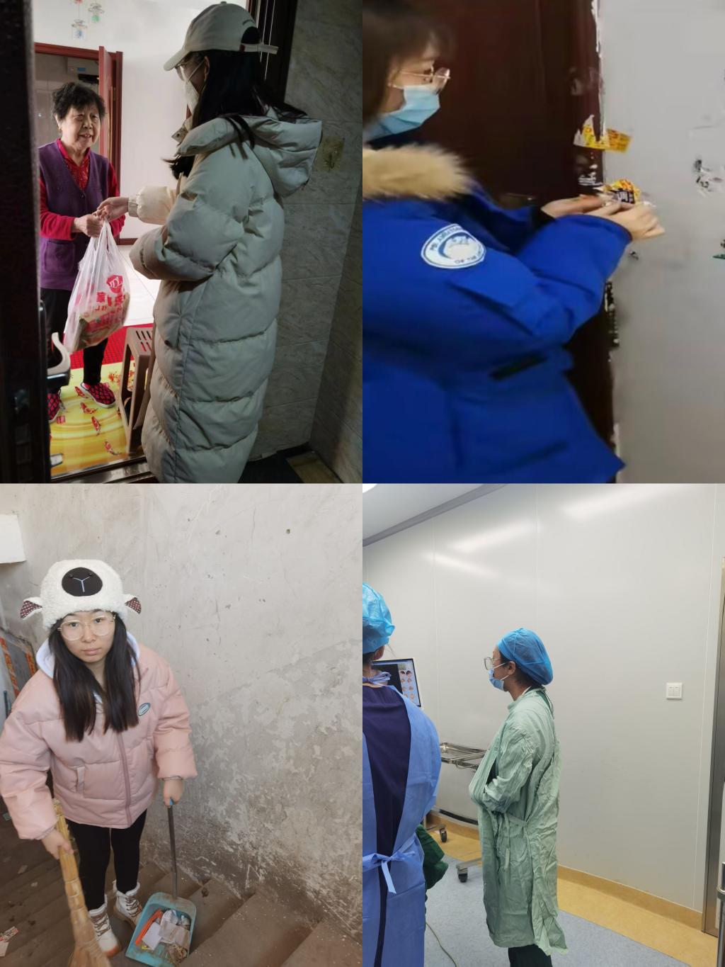 赵鑫同学在肇东市忠信社区进行志愿活动,在活动过程中,配合当地网格管理员进行节后走访,并赠送慰问品等;陈雪同学在铁力市双丰镇育才社区帮助社区工作人员一起清理社区环境,为社区营造良好的生活环境;李欣同学在肇东市社区帮助社区居民打扫卫生,同时配合社区工作者人员做好环境的净化和保护;陈思琦同学在丹东市第一医院六道口院区进行手术室护士的实习,在志愿实习过程中,配合带教老师的工作,学习外科手术刷手、无菌器械包的开包以及铺无菌操作台等。