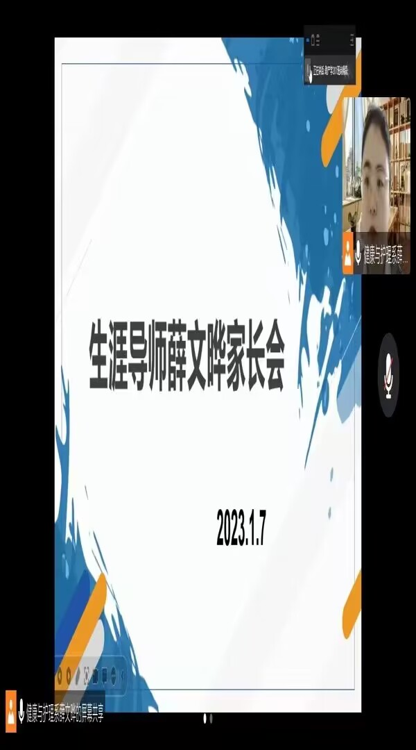 为实现学校和家庭的互动,让各位家长了解学校,了解学生在学校的情况,同时也让老师了解学生第四学期进展。2023年1月7日下午13时,健康与护理系生涯指导教师薛文晔老师开展了线上家长会。