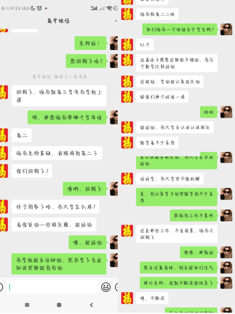 通过这次线上回访,让我感受颇多。每个人都有属于自己的独家记忆,母校不仅是我们最美好的回忆同时也是我们回不去的过去,每一次谈起内心都会微微颤动想起与老师同学朝夕相处的美好时光,即使因为一些原因没有能回到母校,但在线上与老师聊聊时,那段美好的回忆也会突然想起来,曾经老师的谆谆教诲仿佛在昨天,最后才明白什么叫“春蚕到死丝方尽,蜡炬成灰泪始干。