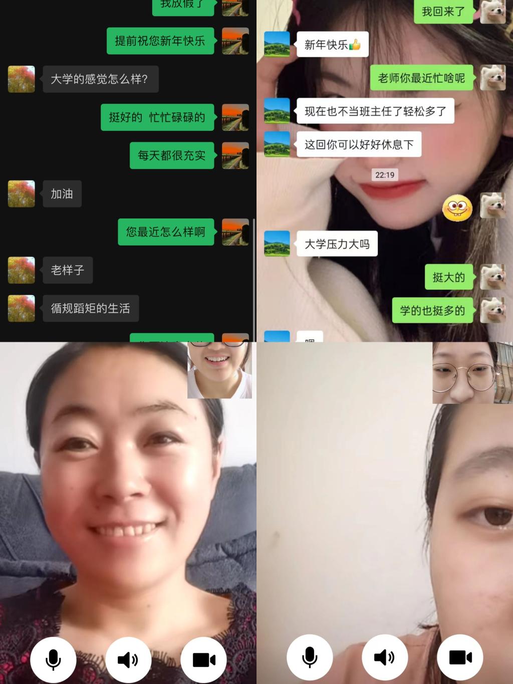 老师为我们接下来的道路指点了迷津,给了我鼓励和信心。我们一起谈论上学时的趣事和怎么都回答不出的题目。老师还给我展示了母校,还有学弟学妹们奋笔疾书的照片,我们也给老师看了我大学校园的美丽景色,还有我们丰富的社团活动,实验器材等。同时,作为高考的亲历者,我们也愿意将我当时备考时容易走进的误区向老师进行了阐述,如果可以将部分经验分享给母校的学弟学妹,在协助他们的同时,也能丰富实践活动的意义。