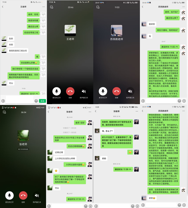 由于疫情原因,小组四人均采用线上回访的形式。在进行母校回访活动的过程中,张和碧同学向老师表达了对母校的感激之情,接着询问了一些老师和学校的近况,老师也询问了张和碧同学的大学生活以及学习上的困难,特别是远行求学的学子让老师心中十分牵挂。庄天雨同学询问老师的身体近况,并且运用专业课中医学概论等课程所学,为老师提出了一些阳康后的建议。廖文悦同学为学弟学妹写了一些寄语,表达了对学弟学妹们的殷殷期盼。姜凤婷同学则是和老师交流了自己对于未来工作学习的期盼,自己的专业在未来可以有一个好的发展。此外,还向老师介绍了我院开展第四学期的意义,得到了几位老师的肯定。