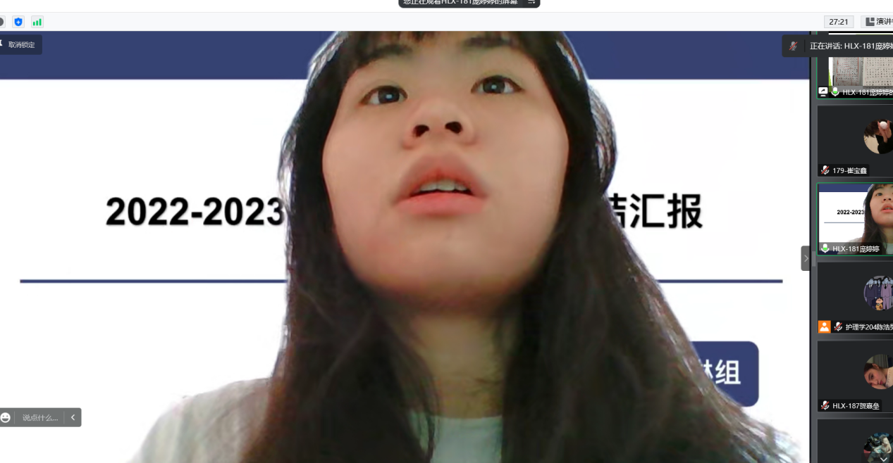 2023年1月08日11时,由副主任张林琳老师带队的33名学生进行了“2022-2023第一周总结汇报会”,共10组,每组一个代表陈述第四学期本周的任务完成情况。