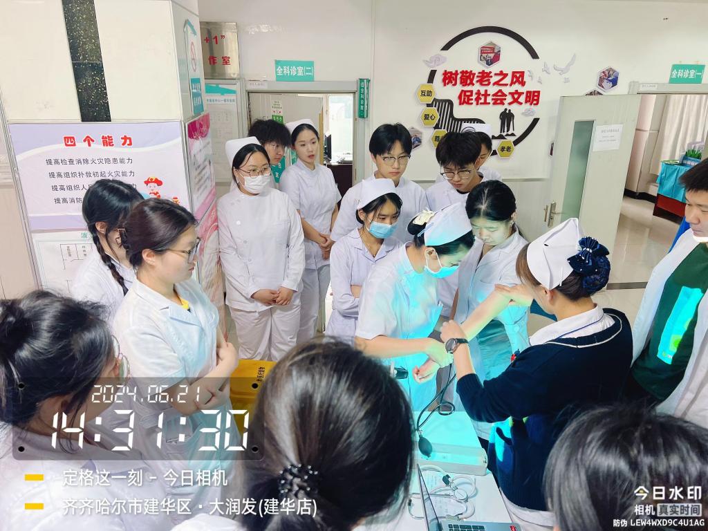 社区也对我们进行了培训,由社区的老师为我们详细的讲解了高血压和高血压的护理措施,也让我们用水银的血压计测量血压并且强调了血压计使用的注意事项。