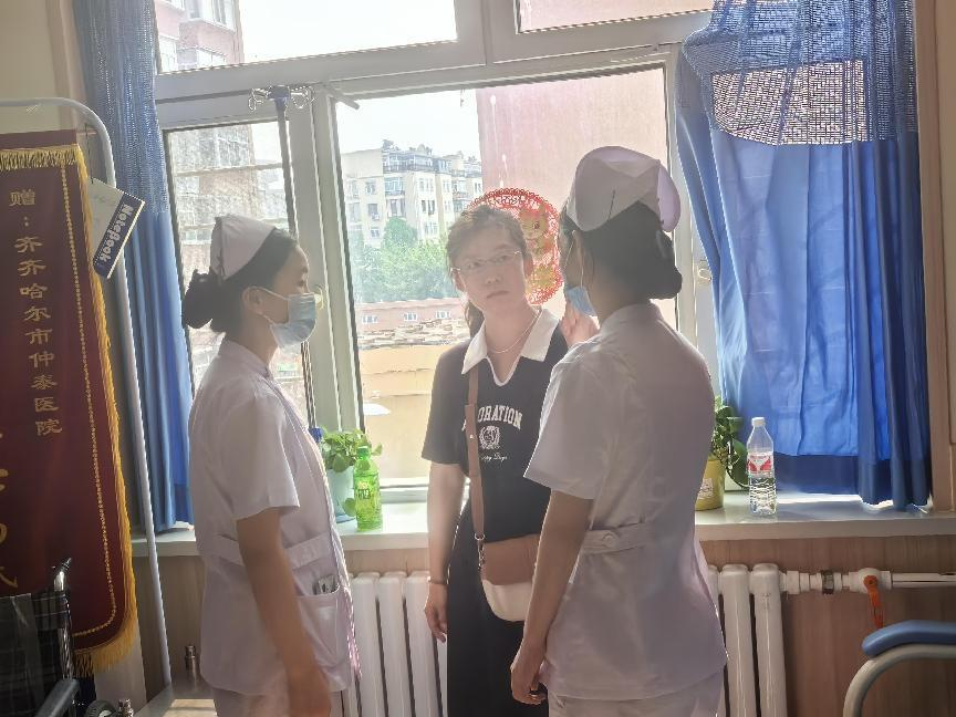 2024年7月11日下午,康护工程系教师尹娜赴仲泰医院进行第4周实习检查。