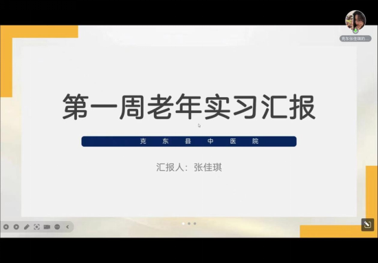 冯蕾老师强调本次会议的各项要求后,对其所带的三组实习学生进行了随机抽人汇报。汇报PPT中能够准确体现出学生们的专业实践成果,在汇报中,冯蕾老师专注的听取学生们的汇报,对同学们提出的问题一一解答,让同学们有所收获。冯蕾老师对同学们认真负责,希望同学们在接下来的专业实践学期继续进步,提高自己的专业知识和技能操作,成为一名优秀的护士!