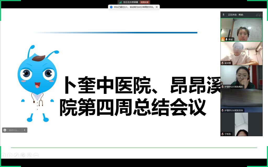 7月13日晚八点,指导老师米冬雪动员我们开了第四周总结会议,会议分为总结实习感悟,总结实习问题,和PPT汇报三部分。