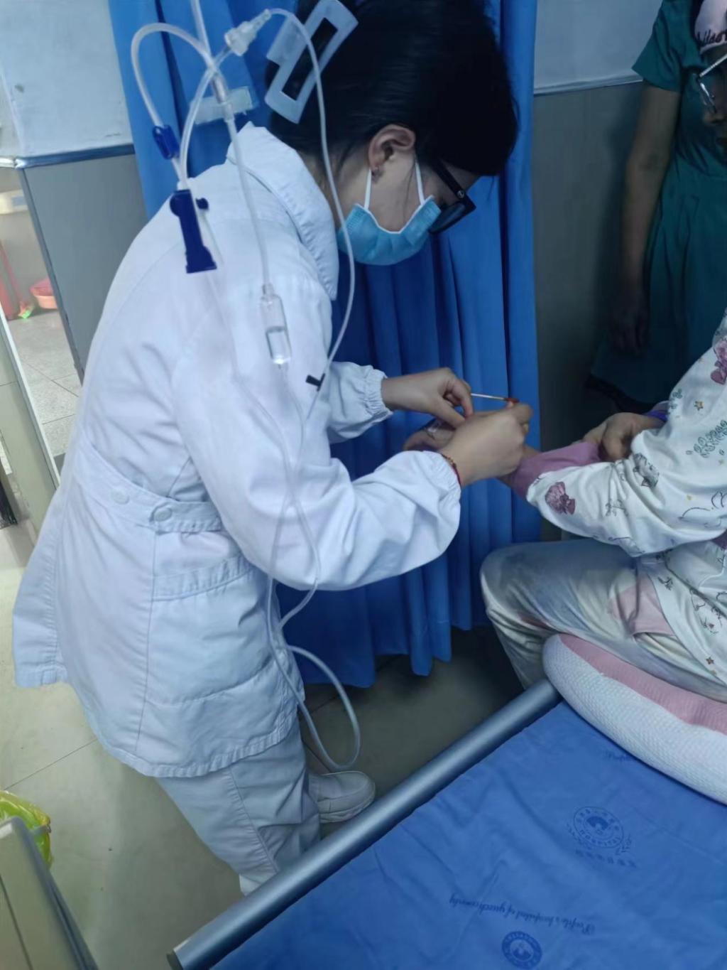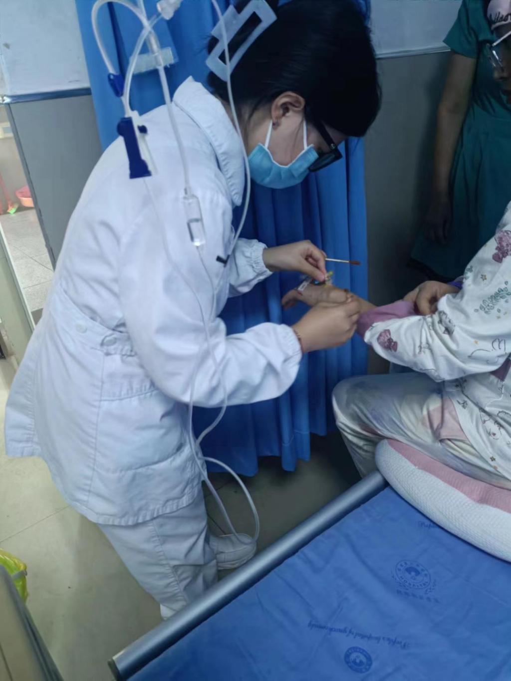 来到妇产科的第四周,在学习为患者测量生命体征、如何护理产后孕妇等知识后,我开始学习如何进行配药、如何为患者进行静脉输液等知识。最常用的是头孢与生理盐水的配置。首先将需要的用物准备齐全,先核对患者的医嘱,查看准备的药物是否与医嘱上的药物一致。以头孢与生理盐水为例,先检查头孢与生理盐水的名称、浓度、剂量、是否在有效期内,检查生理盐水瓶身瓶底有无裂痕、瓶口有无松动、有无杂质沉淀等物质,检查20ml一次性针管是否在有效期内、包装有无破损。用棉签进行消毒两次,用空针吸取10ml生理盐水注入头孢中混匀,再将混合好的药物吸取出来注入生理盐水,最后进行二次查对。