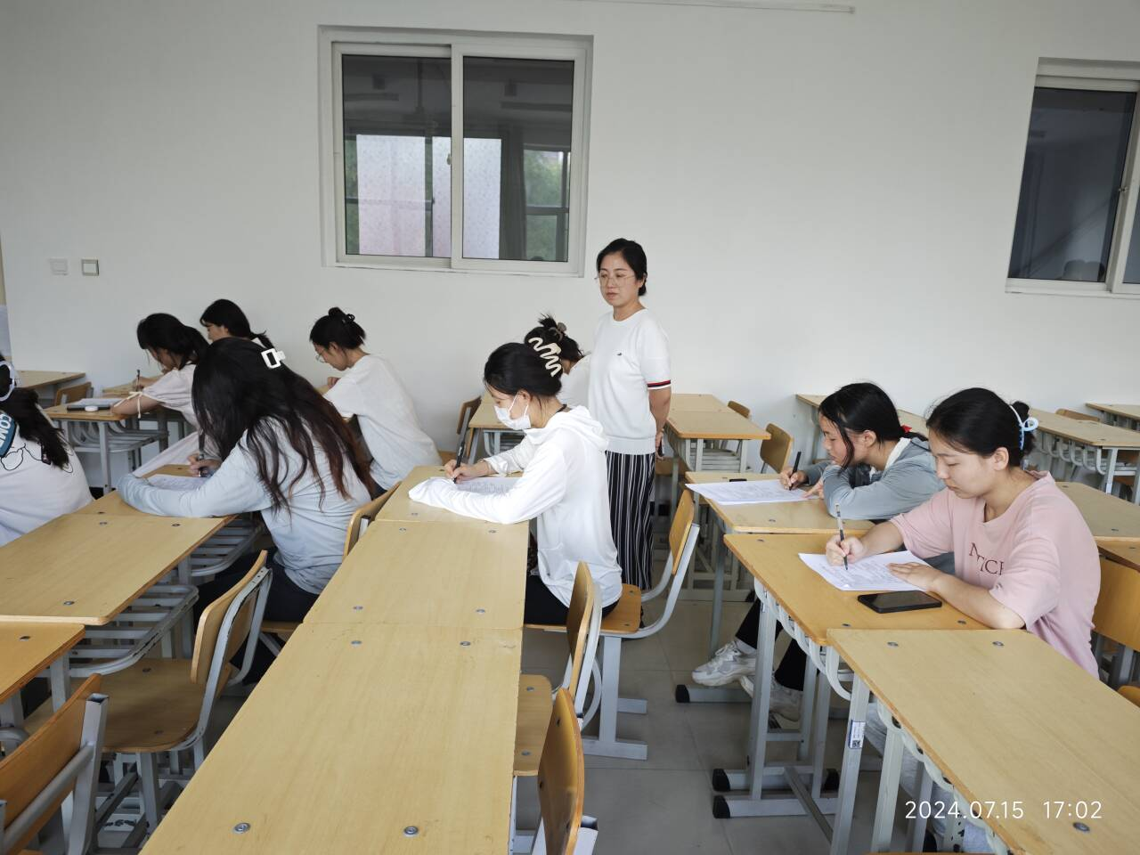 为了响应学校的号召,天天有作业、周周有小结、双周有测验,康复工程系建管专业彩虹社区卫生服务中心全体学生,在于佳老师的带领下,于2024年7月15日5点在一教1213进行了线下测验考试并召开了周总结会。