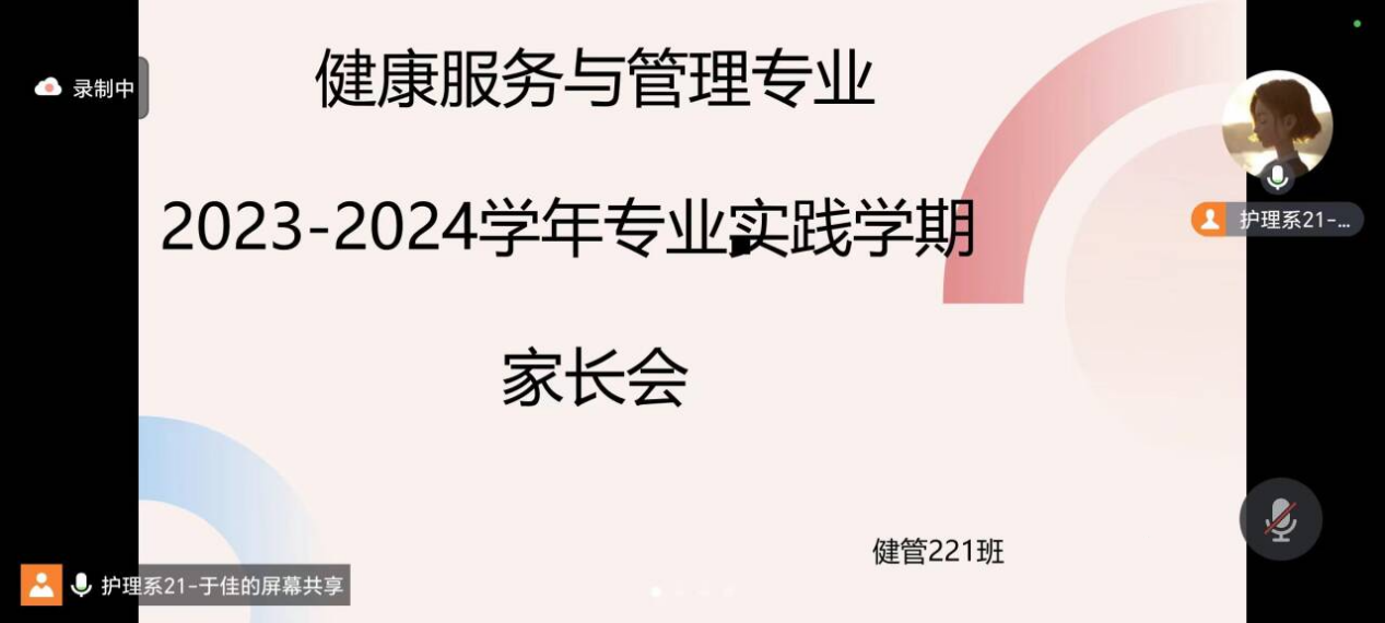 为了增强专业实践学期家校之间的沟通,2024年6月27日,健康服务与管理专业教师于佳、袁凤娟老师召开了2023-2024学年专业实践学期家长会。本次会议由于佳老师、袁凤娟老师共同主持,健管221班自主实习团队所有学生及家长参加。