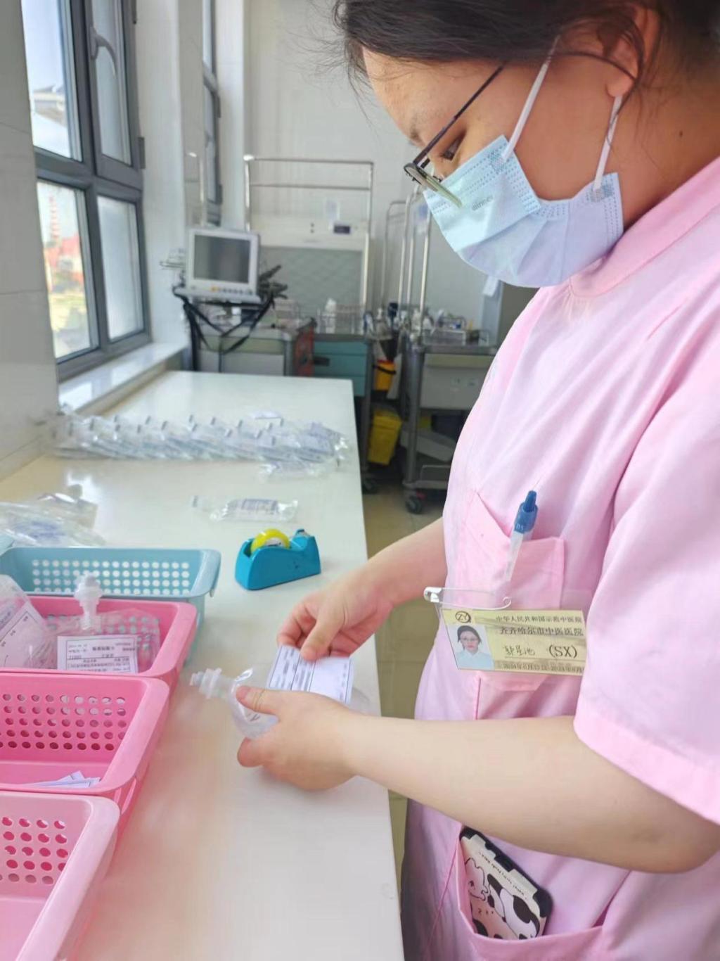 郭星池同学本周跟随带教老师学习配药,带教老师向小郭同学详细讲解了配药的重要性及药物之间的配伍禁忌,让小郭同学深刻体会到只有具备专业的精神,扎实的知识和严谨的工作态度,才能为患者提供安全和有效的护理。