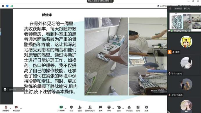 郝佳烨骨外科见习的一周里,收获颇丰。每天跟随带教老师查房,看到科室里的患者通常面临着较为严重的骨骼损伤和疼痛,让他深刻地感受到患者的痛苦和他们对康复的渴望。通过协助护士进行日常护理工作,如换药、伤口护理等,不仅提高了自己的操作技能,还学会了如何在紧张的环境中保持冷静和专注。同时,更加熟练地掌握了静脉输液,肌内注射,皮下注射等基本操作。马胜闯同学在全科的实习期间,见识到了许多疾病。全科不像其他科室一样。全科涵盖广泛,能处理多种常见疾病和健康问题,注重整体和综合诊疗。其他科室则更具专业性。在这里,会跟随护士长进行病房巡查,了解患者病情,协助测量生命体征。随后参与配药、输液等护理操作,时刻关注患者的需求。下午,帮忙整理病历资料,为患者提供健康教育和心理支持。王悦同学每天在主任与护士长的带领下与其他护士们一起查房。认真倾听患者的病情描述和诉求,记录生命体征等关键信息。同时,在带教老师细心地教导下,更加熟练地掌握了许多操作:换药、皮下、静脉输液、肌内注射、做雾化、 留置针冲封管、给病人吸氧、测血糖等。在操作前,会严格执行查对制度,确保用药的准确性和安全性。同时,会耐心地向患者解释治疗的目的和注意事项,以减轻他们的紧张和焦虑。