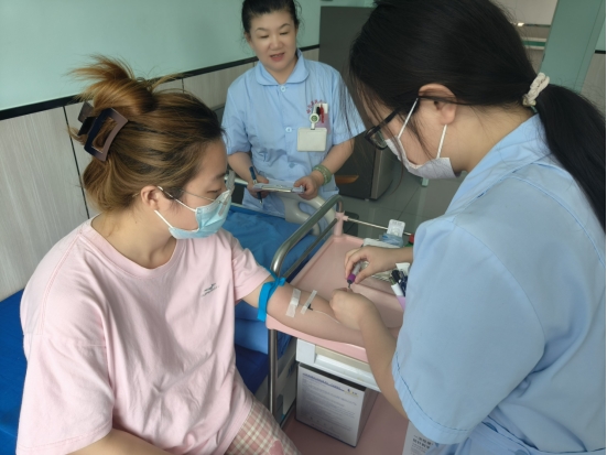 为提升齐齐哈尔工程学院护理学(专升本)校外课堂民仁医院医院学生对静脉采血的技能水平和临床应用能力,8月7日上午,宋玉等8名学生在哈尔滨民仁医院院内进行了专业护理技能——静脉采血大赛。比赛要求各参赛成员按照抽签顺序进行比赛顺序的分布,参赛选手按照比赛考核标准,在规定的时间内完成操作。由科室医生陈秀艳作为评审,按照考核要求进行相应分数打分。
