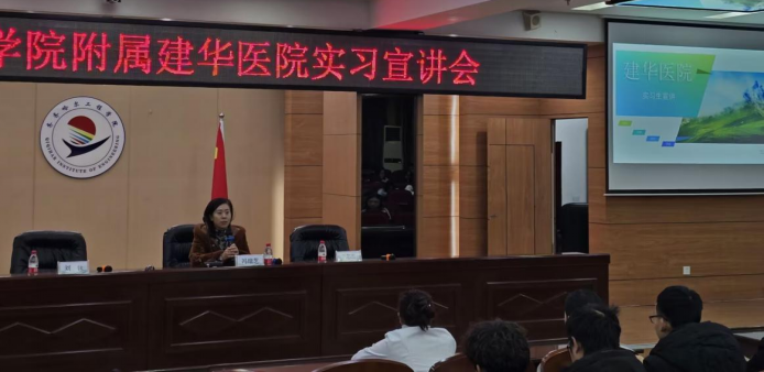刘佳科长详细介绍建华医院所提供的多个部门岗位,确保学生实习期间理论与实践并重,旨在为每一位实习生提供最好的学习和生活环境,确保大家在实习期间能够安心学习、健康成长。