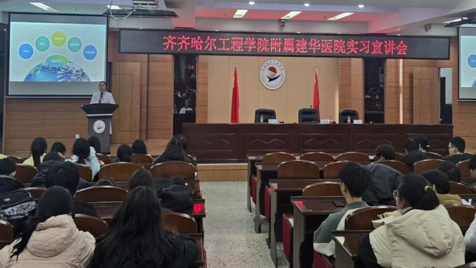 2024年11月20日,在图书馆601室成功举办了“建华医院实习宣讲会”,齐齐哈尔工程学院附属建华医院的院长冯瑞芝、科教科科长刘佳及干事于芯蕊亲临现场,为全校各系共计300余名学生带来了一场内容丰富的毕业实习分享会。