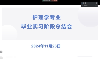 为保证护理学专业2021级学生毕业实习和护考报名的顺利进行,护理学专业于2024年11月23日19:30采用腾讯会议方式组织召开2021级学生毕业实习月总结会。护理学专业负责人孙晓雪主持,专业教师、辅导员及2021级全体学生参会。