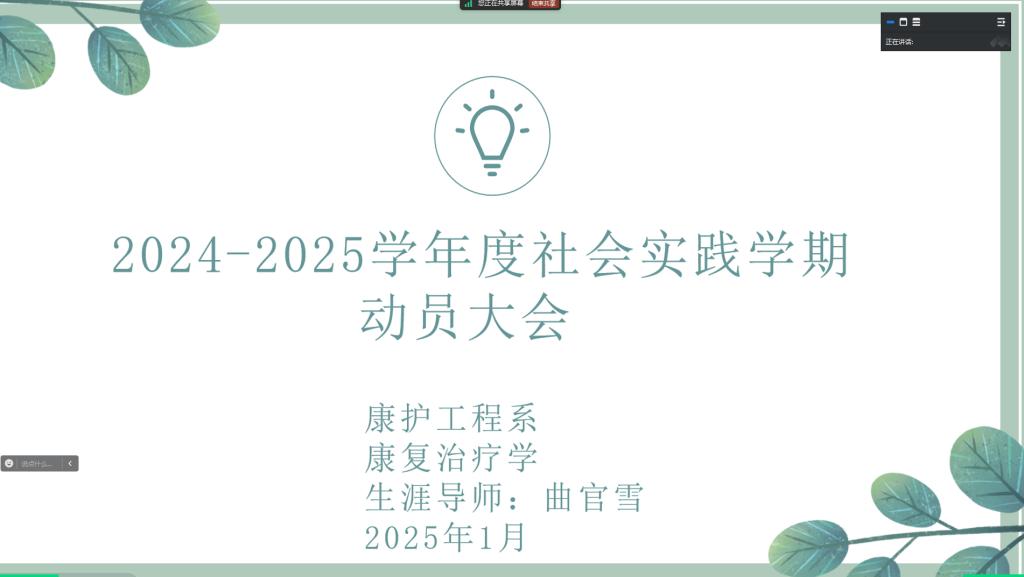 生涯导师曲官雪于1月7日举办社会实践学期动员会,向学生们介绍实践学期须知及注意事项。