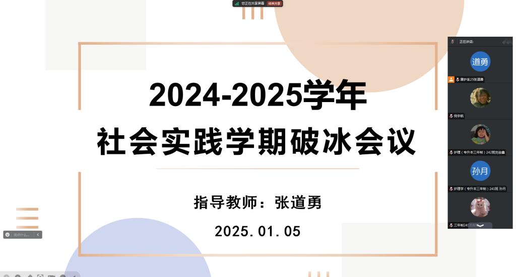 2025年1月5日晚20时,生涯指导教师张道勇组织召开2024-2025学年社会实践学期破冰会议。