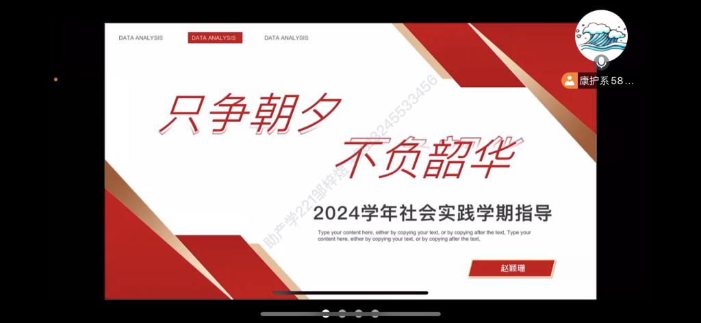 为帮助学生更好地理解和参与社会实践学期活动,2025年1月7日晚上6点康护工程系赵颖珊老师为学生召开了一场全面且深入的指导会,详细解读了《2024-2025学年度社会实践学期实施方案》,为同学们即将开启的实践之旅指明方向。