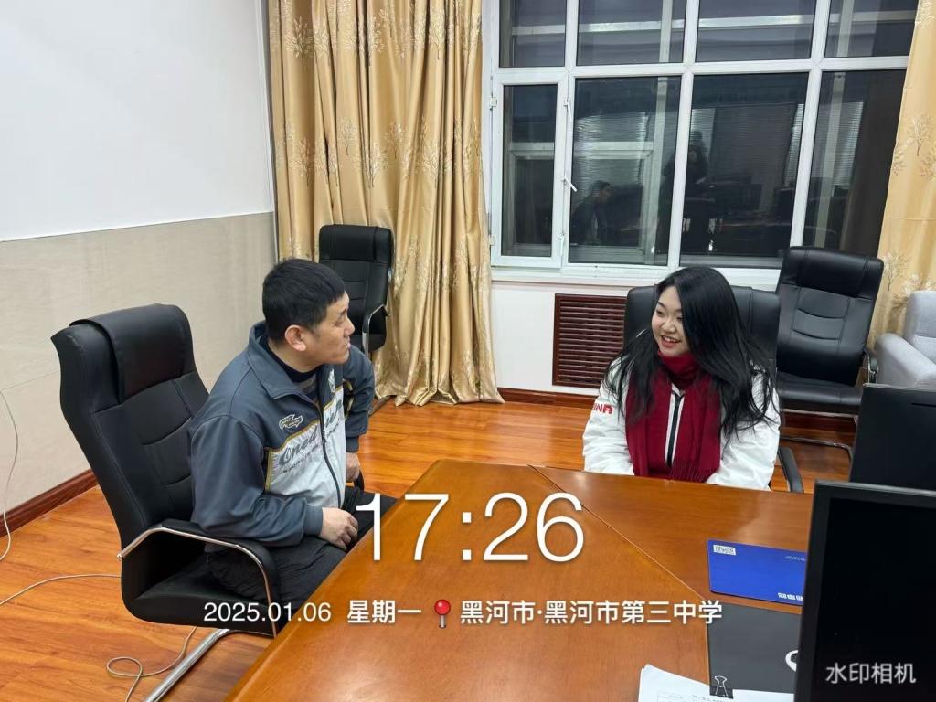 2025年1月6日,为响应齐齐哈尔工程学院社会实践学期计划号召,张思源同学作为往届学子回母校赴黑河市第三中学学校开展“回访母校”社会实践活动。黑河市第三中学初三(4)班班主任乔炳林会见了张思源同学并在智能备课室合影。活动伊始,乔老师带领张思源同学在校园及教学楼内进行参观交流,乔老师向张思源同学介绍了黑河市第三中学近年来为创建特色鲜明的高水平教学的建设情况和取得的成就。在谈到招生宣传工作时,乔老师强调,希望通过每年的学子回访母校活动,整合和运用好教育资源和人脉,在共建好优质社会人才的同时,为学弟学妹们传经送宝,帮助指导学弟学妹做好高考志愿填报等事情。参观交流之后,乔老师带领张思源同学深入初三(4)班班级向学生送去齐齐哈尔工程学院的问候,并向正在上课的老师和同学们介绍2025年齐齐哈尔工程学院建设及改革情况,鼓励同学们积极报考齐齐哈尔工程学院。