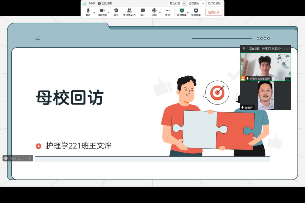 此次回访,不仅加深了师生情谊,也启发了在校中专生。让他们提前了解大学生活和职业发展。此次视频会议意义重大,既体现了毕业生对母校的感恩,也向母校和学弟学妹们传递了精彩又充实的大学时光,期待与学弟学妹们大学相遇。