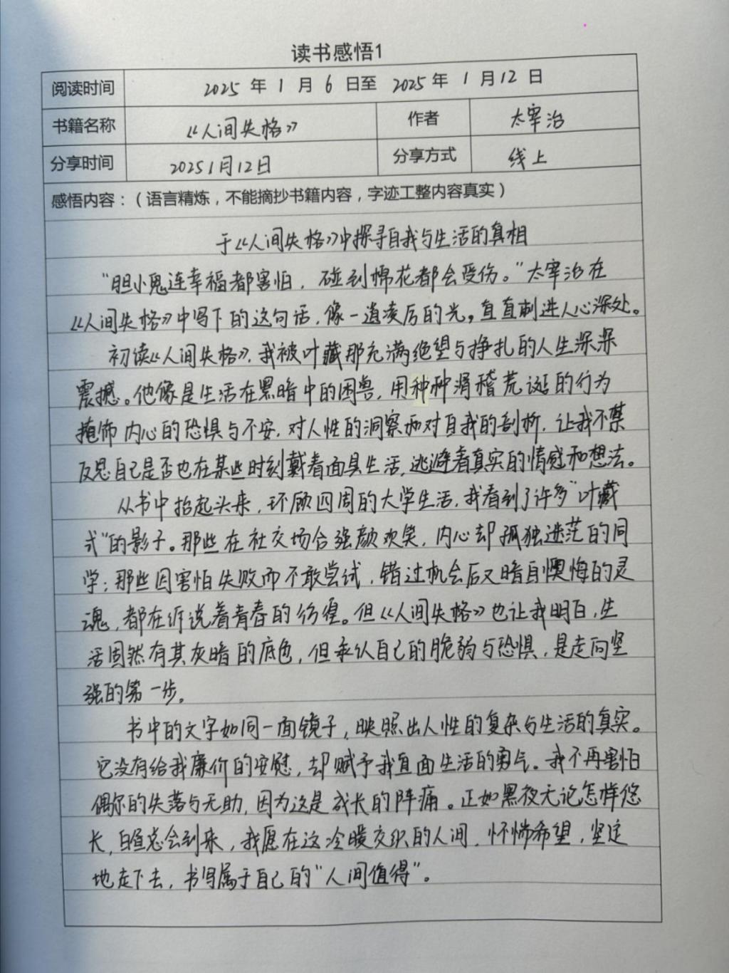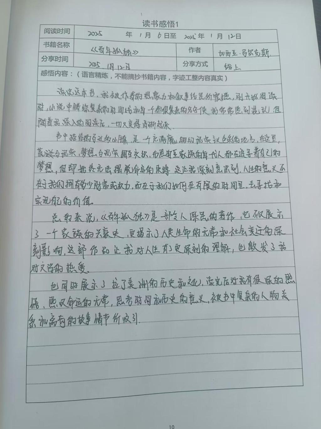 交流会上,《人间失格》成为热议焦点。马玉洁提到,书中叶藏的挣扎与沉沦,让大家深刻反思人性的脆弱与复杂,也引发了对当代社会心理健康问题的关注。在探讨《百年孤独》时,大家沉浸于马孔多小镇的奇幻兴衰,于镇感慨于书中家族命运的轮回,宛如一面镜子映射出人类历史的沧桑变迁,其魔幻现实主义手法为解读世界提供了独特视角,拓宽了文学视野与思维边界。