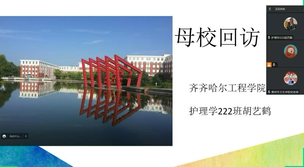 在2025年1月16日我以齐齐哈尔工程学院学子的身份,通过腾讯会议,线上回访了我的母校黑河市卫生学校。这次经历让我感慨万千,收获颇丰。我认真收集整理了齐齐哈尔工程学院的详细资料,涵盖特色专业、教学成果、校园文化等方面,还仔细梳理了高中阶段的学习经验,同时也精心准备了假期实习经历的分享内容,希望能给学弟学妹们带去全面且实用的信息。
