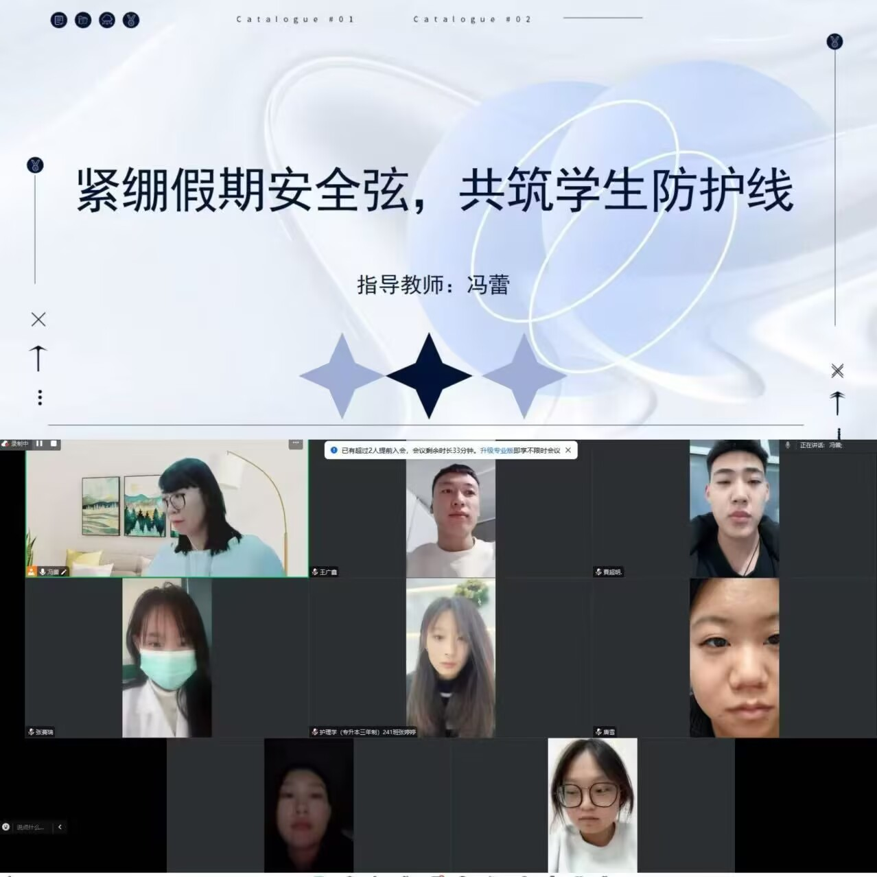 为切实保障社会实践学期学生的安全与健康,冯蕾老师于2025年1月16日召开了假期安全教育线上会议,旨在全方位保障同学们在假期期间的人身安全与心理健康,确保大家能够度过一个平安、快乐且充实的假期时光。