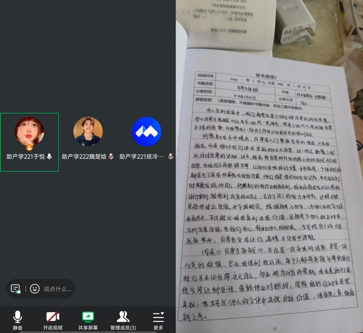 在读书交流中,让我们印象最深刻的还属《自卑与超越》这本书。为此,KH-306组于1月16日上午在腾讯会议上展开了关于它的深入讨论。
