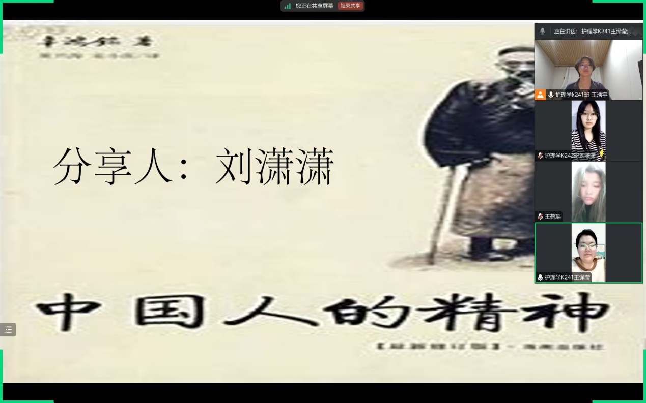 第三位同学王鹤瑶则关注到中国精神在文化传承方面的体现。她在分享中指出,《中国精神》里丰富的文化典故和传统习俗,让她意识到中华优秀传统文化是我们民族的根与魂。诗词歌赋、传统技艺等承载着先辈们的智慧和情感,是中华民族凝聚力的重要源泉。 王鹤瑶同学分享自己参与校园文化活动的经历,通过组织诗词朗诵比赛、传统手工艺展览等,让更多同学感受到传统文化的魅力。她希望同学们都能积极参与到文化传承中来,让中国精神在文化的滋养下代代相传,绽放更加耀眼的光彩。