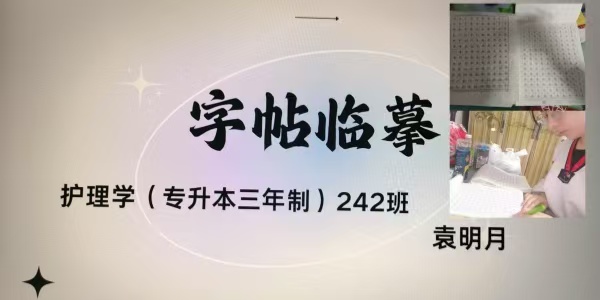 在社会实践的第一周,袁明月同学选择每日临摹字帖。直至完成任务。