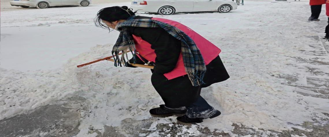 1月9日,大雪纷纷扬扬。唐雪带着工具早早来到社区,投身服务工作。她仔细清理各个角落,像被雪覆盖的墙角、车旁缝隙,连不易察觉的卫生死角都清扫干净,为居民营造安全整洁的出行环境。