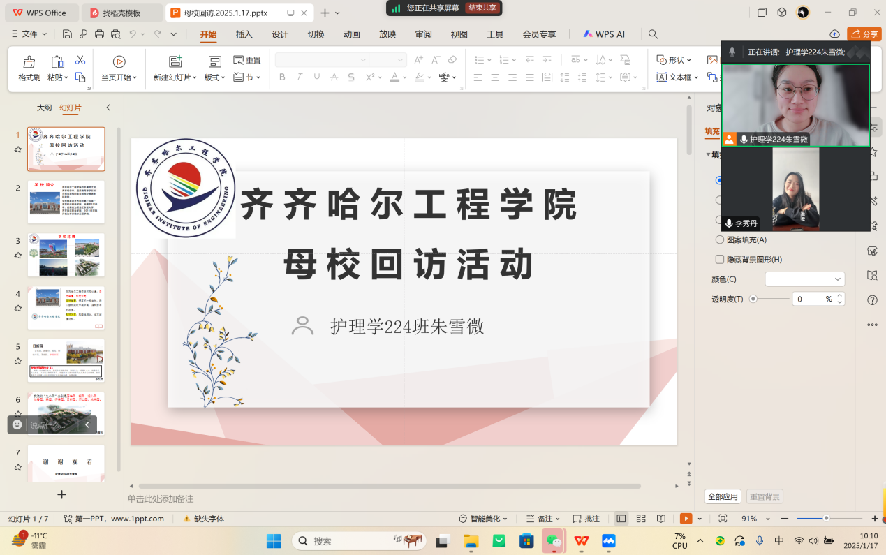 由于母校已经放假,所以朱雪微选择用线上的方式进行母校回访。向老师汇报大学生活点滴,展现我校精神风貌,和学弟学妹分享母校回忆。