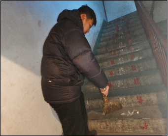 赵明轩同学作为志愿者来到小区开展服务活动。当时,小区的路面结了厚厚的冰,楼道里也有不少垃圾堆积,给居民生活带来诸多不便。我带上铁锹、扫帚等工具,先在小区路面铲冰。冰层坚硬,每一下铲除都很费力,但我咬牙坚持。完成路面清理后,我又进入楼道清扫垃圾,从顶楼到一楼,认真打扫每一个角落。忙碌一天后,小区道路畅通,楼道整洁。看着居民们的笑容,我满心温暖。这次志愿活动,让我深刻体会到奉献的快乐,我也更加坚定了继续投身志愿服务的决心。