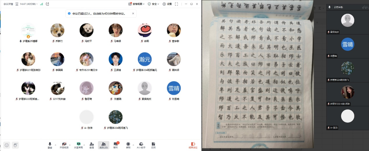 2025年1月24日下午6时,潘娜老师借助腾讯会议,组织同学们开展社会实践学期一周的总结会议,全面梳理与总结本周的实践学习情况。