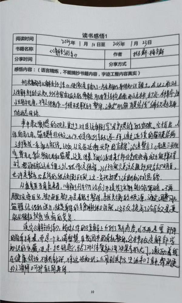 活动由热爱医学知识的我发起,我率先分享自己的感悟:“以前总觉得人体的肌肉骨骼各自为政,读了这本书才明白,它们通过肌筋膜像列车轨道一样紧密相连。”引发大家热烈讨论。