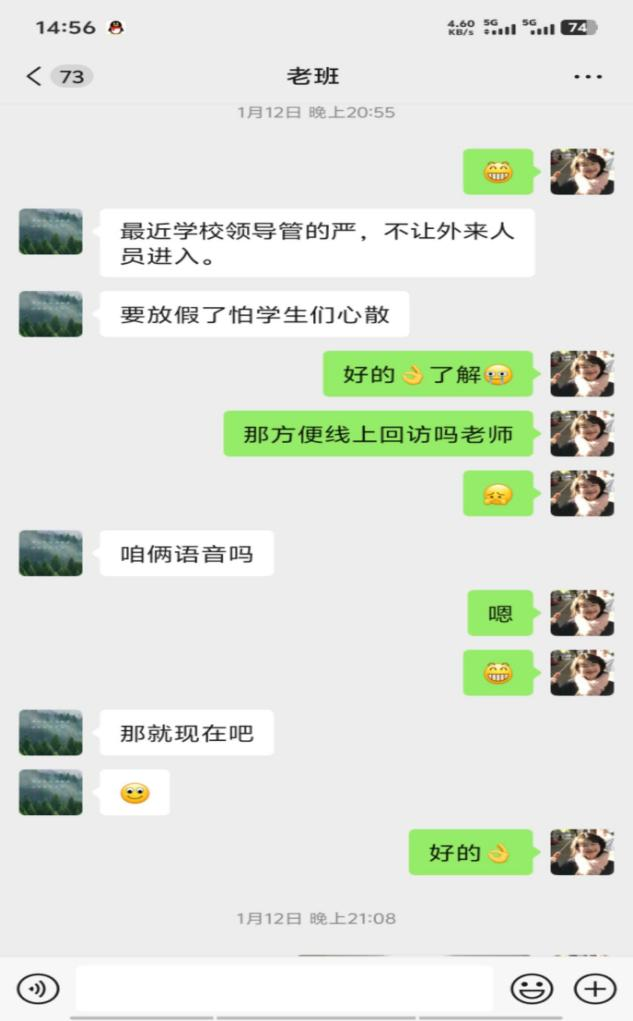 我利用学校晚自习的时间进行了一次线上回访,我向学弟学妹们介绍了齐齐哈尔工程学院的5个系21个专业,向他们介绍了学校丰富的校园活动,专业的教学工作,以及美丽的校园环境,美味实惠的食堂,优质的住宿环境。