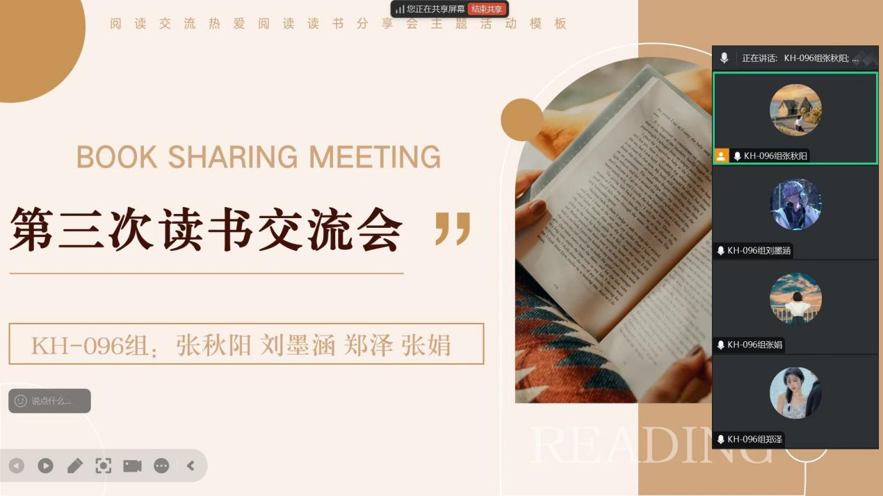 2025年2月14日,KH-096组于线上腾讯会议开展“第三次读书分享会议,每位同学都在阅读的书籍中获得了深刻的见解。