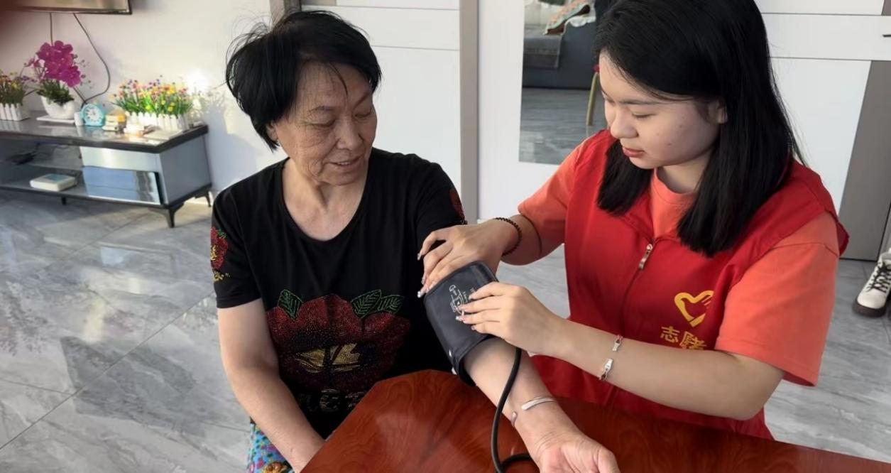 本次志愿服务根据各组员实际情况开展,徐慧娜同学深入社区,主动关怀那些行动不便的老人。她自带血压器,上门为老人免费测量血压。在测量过程中,徐慧娜耐心地指导老人调整姿势,细心操作血压测量仪,每一个步骤都很严谨认真。测量过程中,她与老人们亲切交流,询问他们的日常生活习惯,向他们普及高血压预防和控制的知识。对于血压异常的老人,徐慧娜会反复测量以确认结果,并给予专业的建议,叮嘱他们及时就医。老人们被徐慧娜的细心关怀所感动,脸上洋溢着幸福的笑容,并表达了对她的衷心感谢。