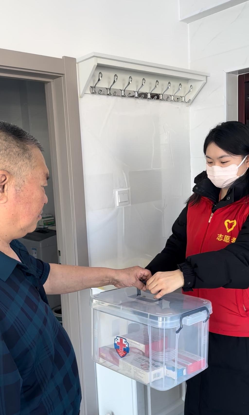 本次志愿服务根据各组员实际情况开展,徐慧娜同学深入社区,主动关怀那些行动不便的老人。为他们免费送药物,讲解药物的作用和使用方法。她自带血压器,上门为老人免费测量血压。测量过程中,她与老人们亲切交流,询问他们的日常生活习惯,向他们普及高血压预防和控制的知识。对于血压异常的老人,徐慧娜会反复测量以确认结果,并给予专业的建议,叮嘱他们及时就医。老人们被徐慧娜的细心关怀所感动,脸上洋溢着幸福的笑容,并表达了对她的衷心感谢。